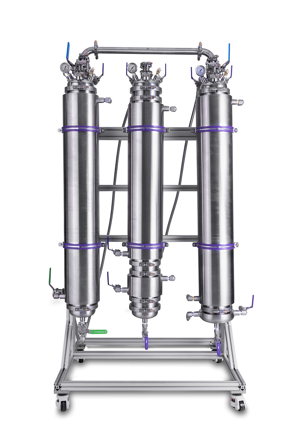 Once the material column has been packed and assembled, continue to assemble the remainder of the system. While assembling the extractor, ensure that all high-pressure clamps are tightened with a torque wrench to manufacturer specification (typically 110 inches per sqft). After assembly, prior to initiating a hydrocarbon extraction, a pre-assembly inspection and testing of the extractor should always be done to ensure safety during extraction. During the inspection, confirm that all gaskets are free of visible wear and ensure all lines and fittings are intact and appropriately tightened before pressure testing the system.